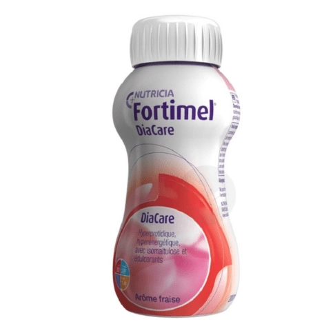 Le Fortimel DiaCare (saveur fraise) est un complément nutritionnel oral spécifiquement conçu pour les personnes dénutries présentant des troubles de la glycémie, comme le diabète ou une hyperglycémie passagère