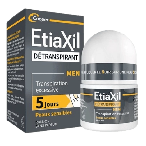 L'Etiaxil Détranspirant Extrême (Peaux Normales) est un traitement spécifique conditionné en flacon bille (roll-on) de 15 ml. Contrairement à un déodorant classique, c'est un détranspirant qui agit directement sur les glandes sudoripares