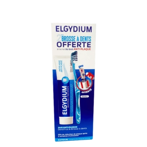 ELGYDIUM ANTI-PLAQUE 75ml + 2 BROUSSES à DENTS OFFERTS